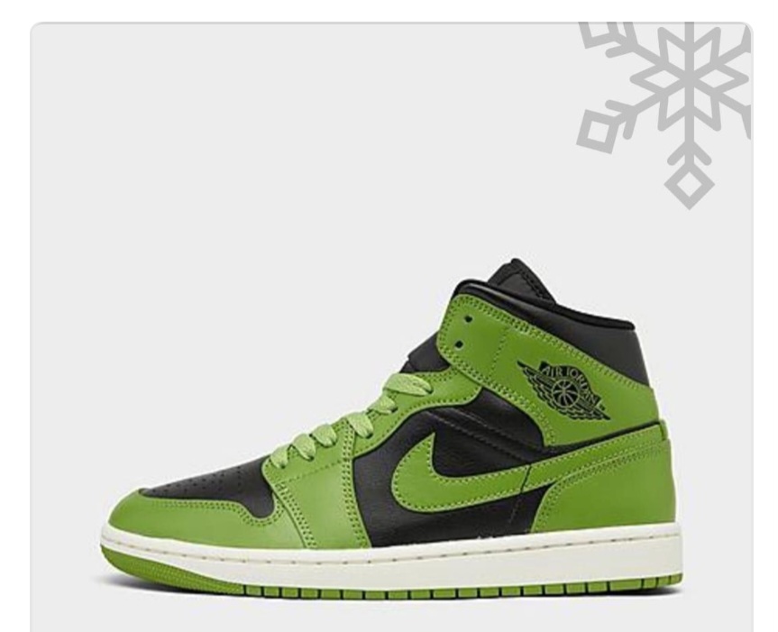 • Lime green & black woman’s air Jordan retro 1 mid casual.